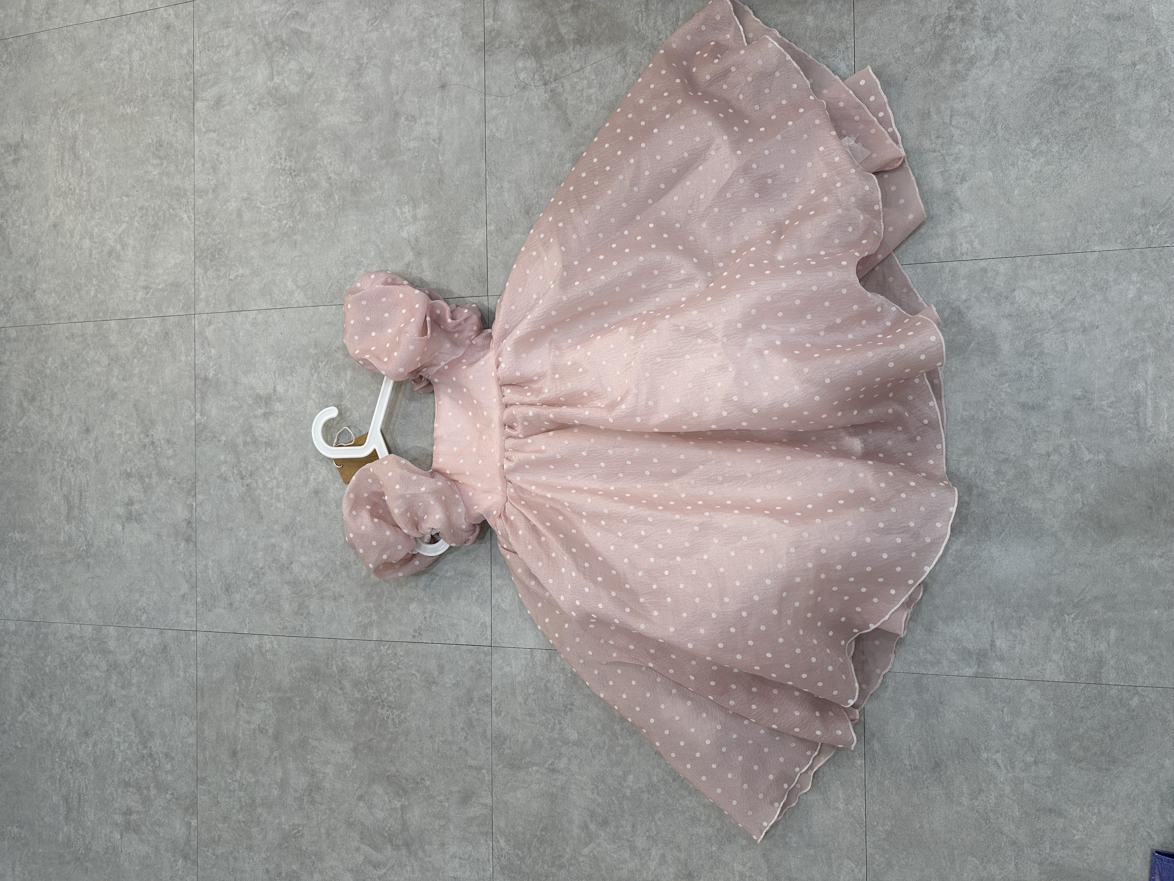 藕粉色點點澎澎洋裝