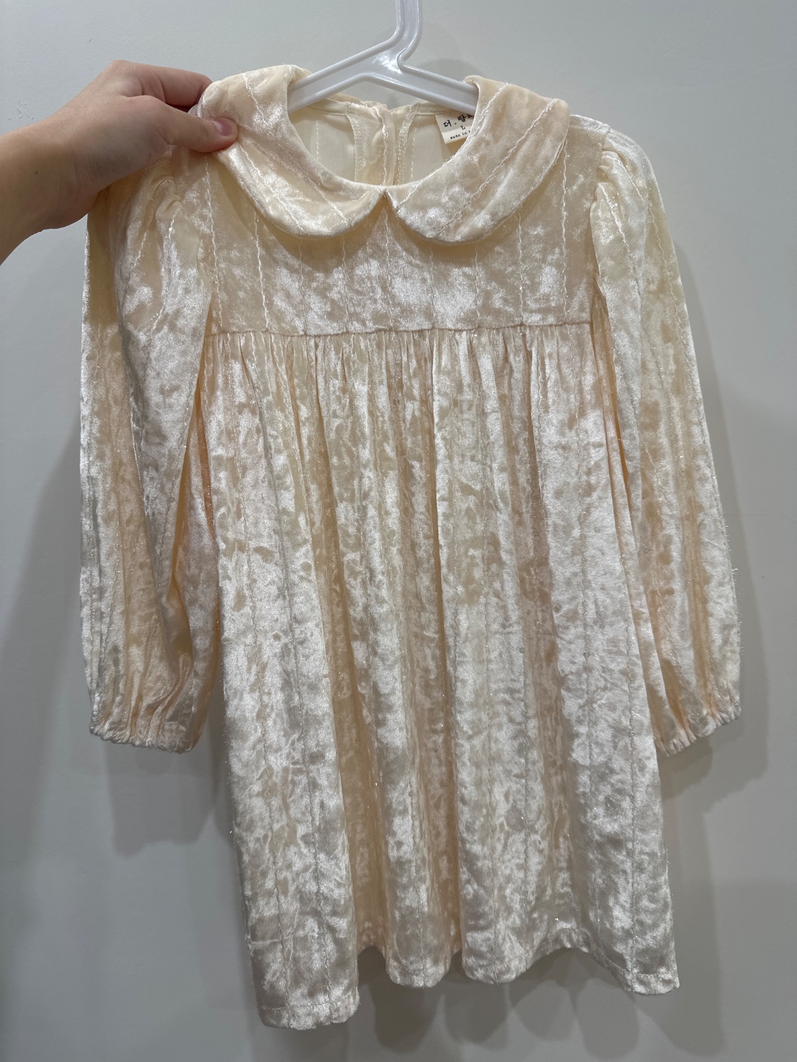 奶油色彼得潘領天鵝絨洋裝