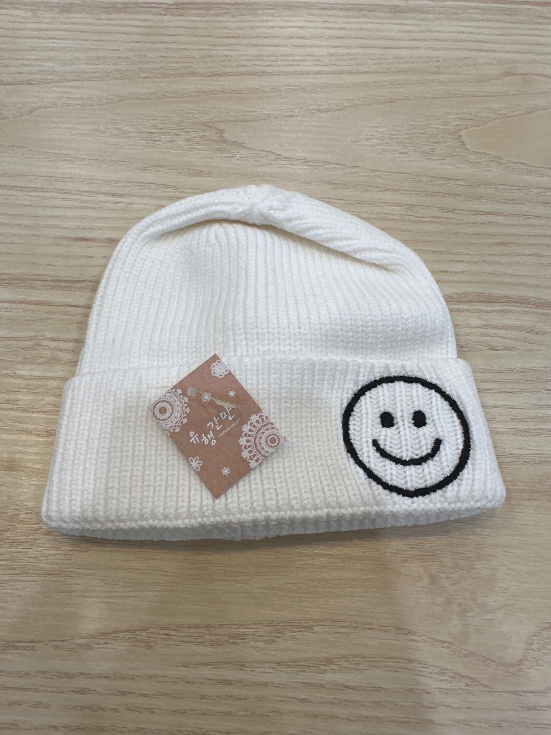 白色笑臉毛帽
