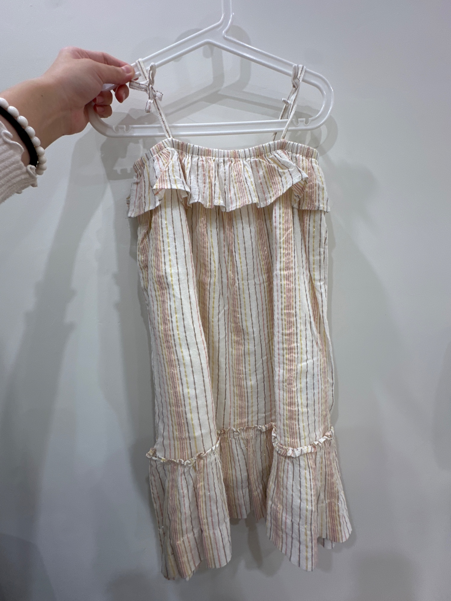 粉白色條紋吊帶裙