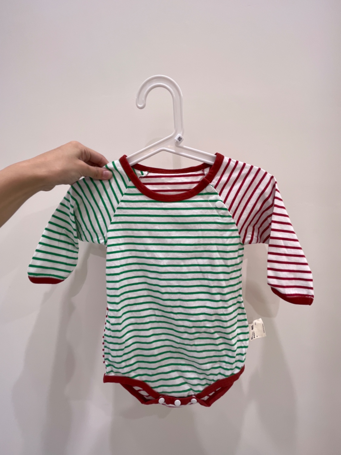 綠紅條紋長包屁衣