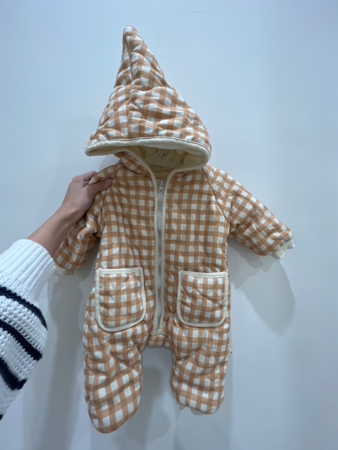 黃白格連帽連身外套