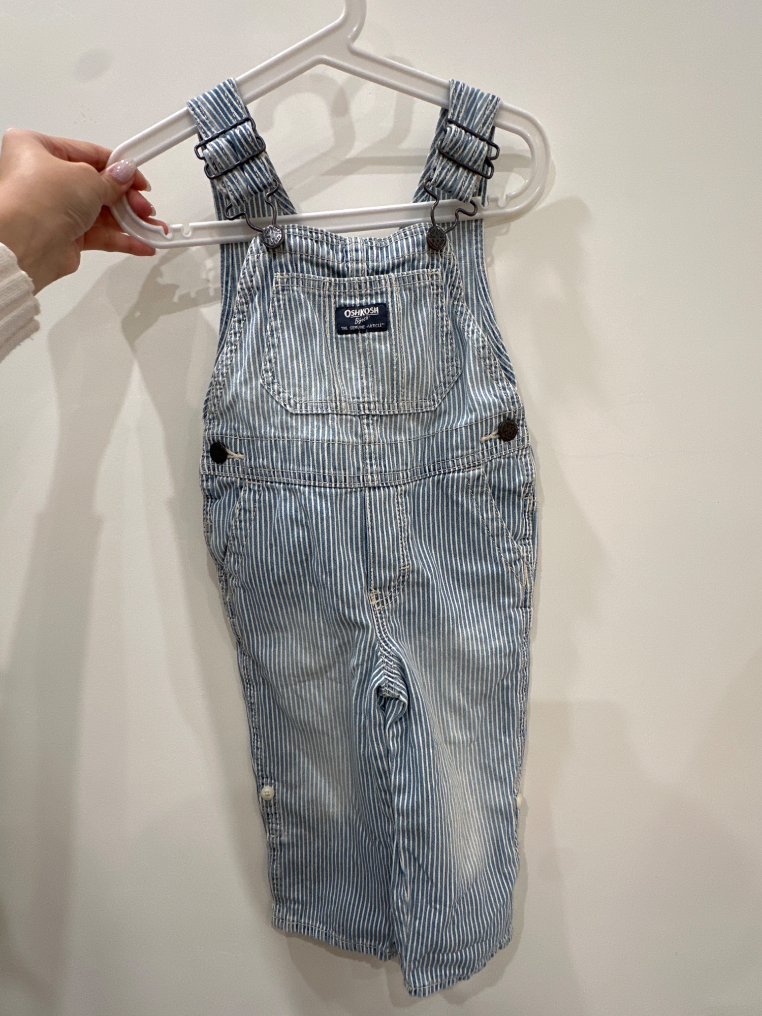 水藍色條紋吊帶褲