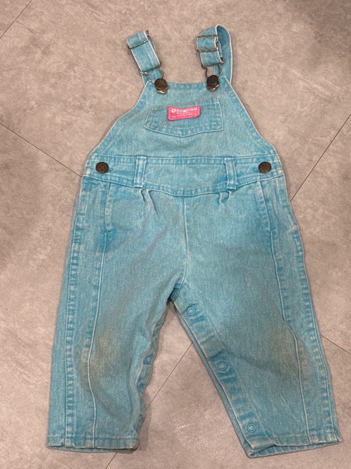 古著湖水藍吊帶褲