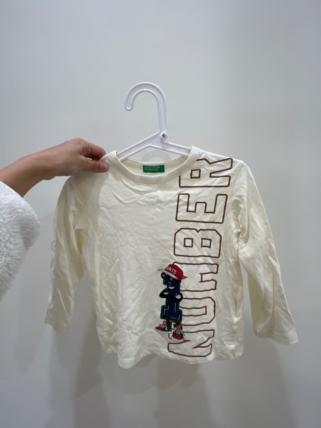 數字1米白薄長袖