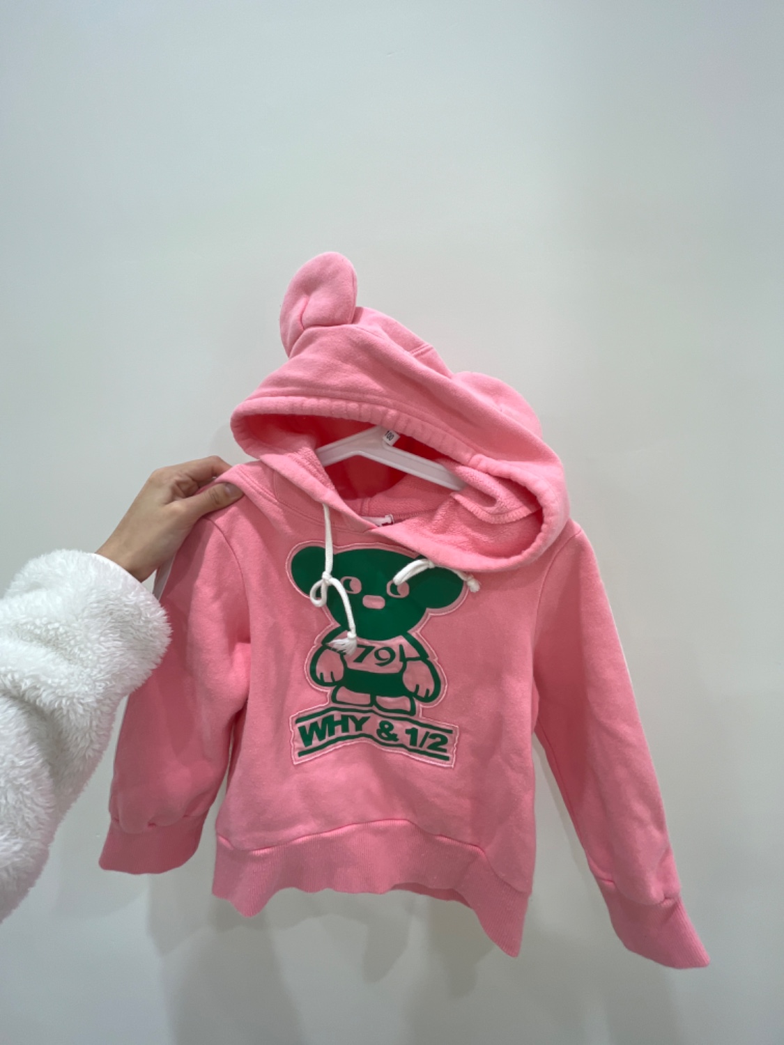 綠色小熊粉紅連帽上衣