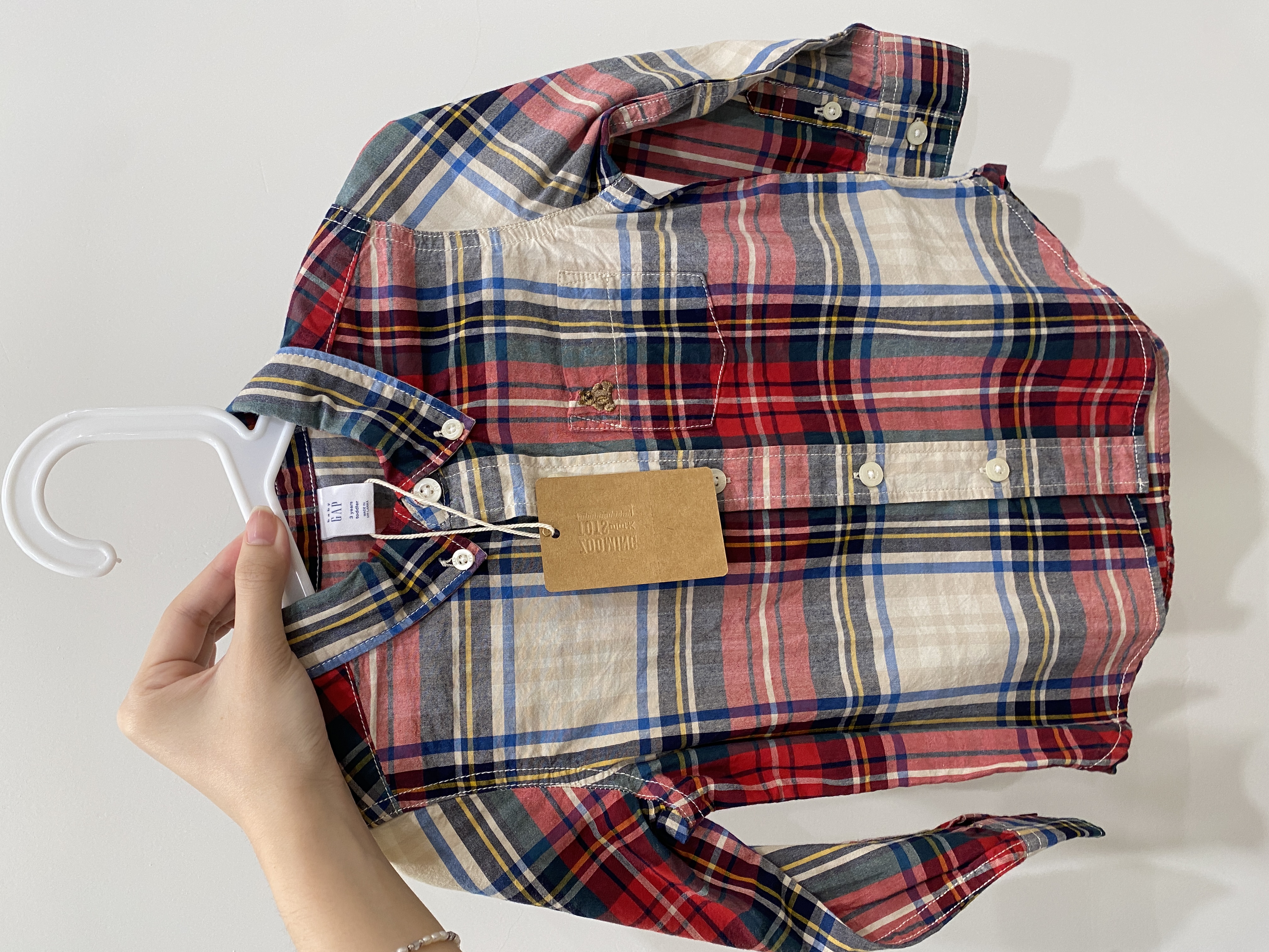 小熊格紋襯衫