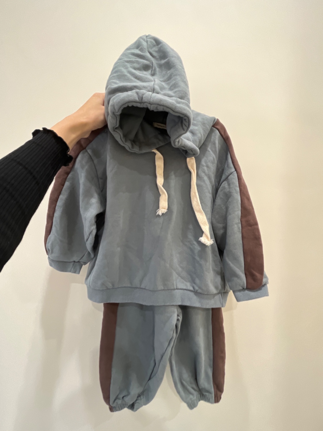 藍色咖啡線條連帽套裝