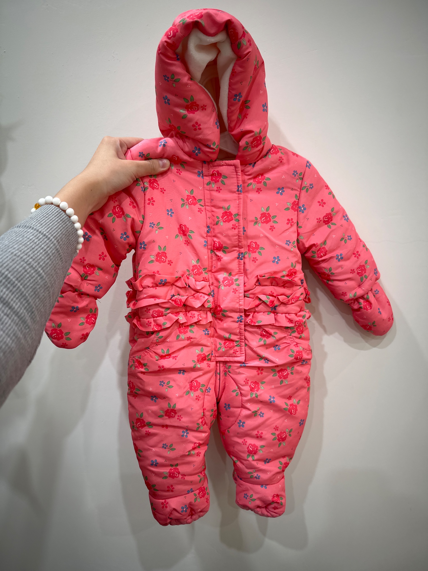 粉色玫瑰花連帽連身羽絨外套