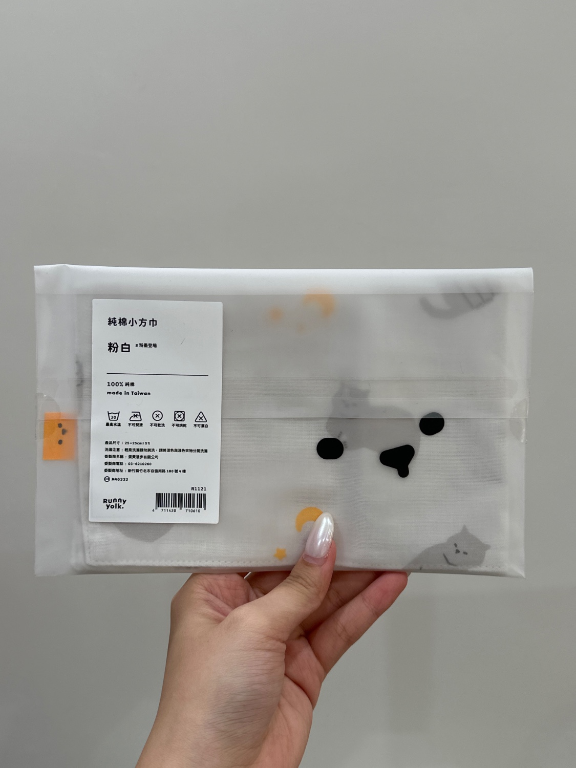 純棉小方巾(粉白)