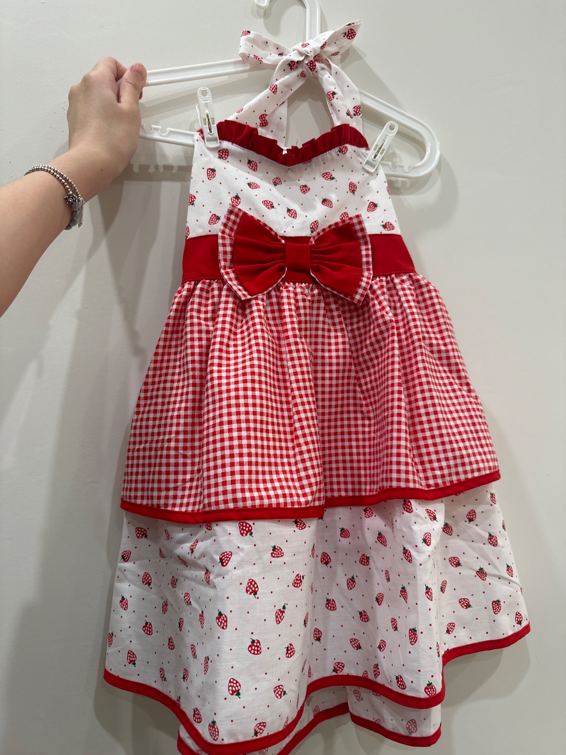 草莓拼接洋裝