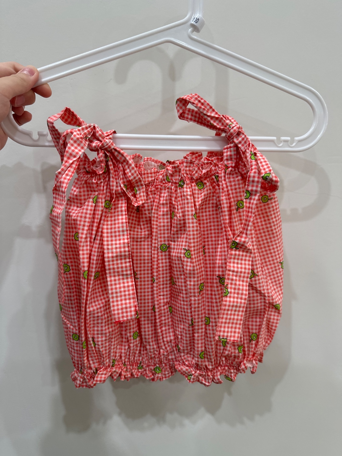 紅色格子吊帶上衣