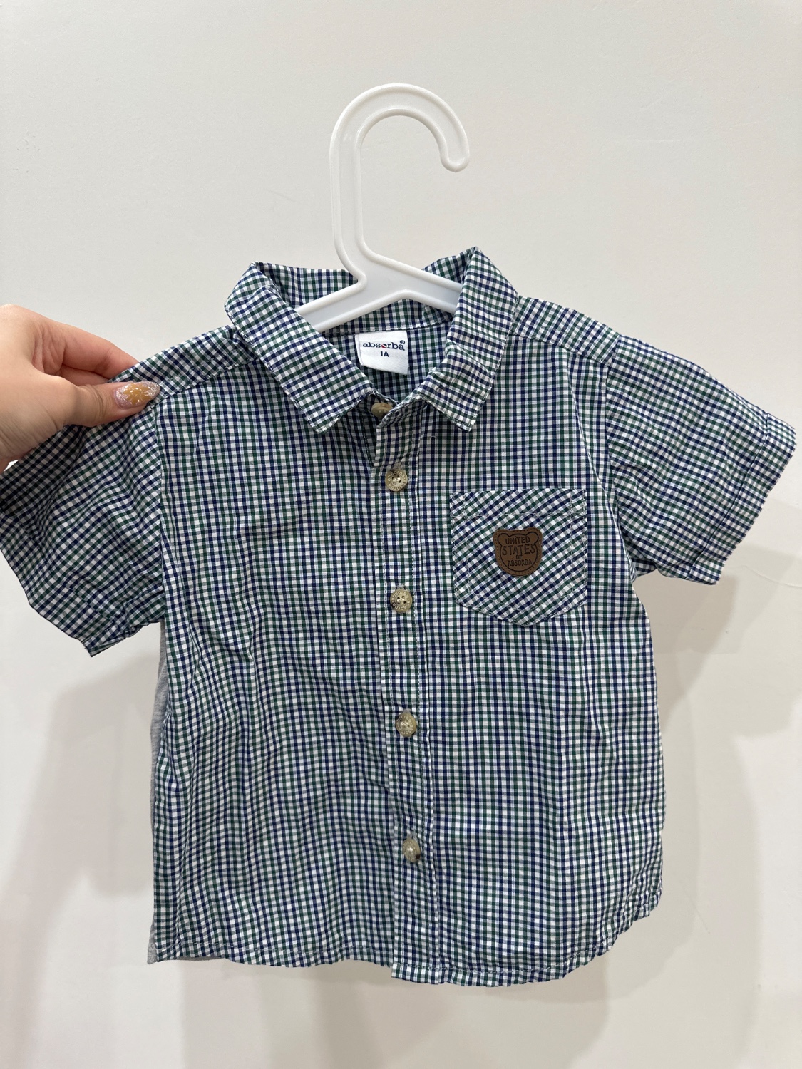 ABSORBA 小熊藍綠格紋襯衫